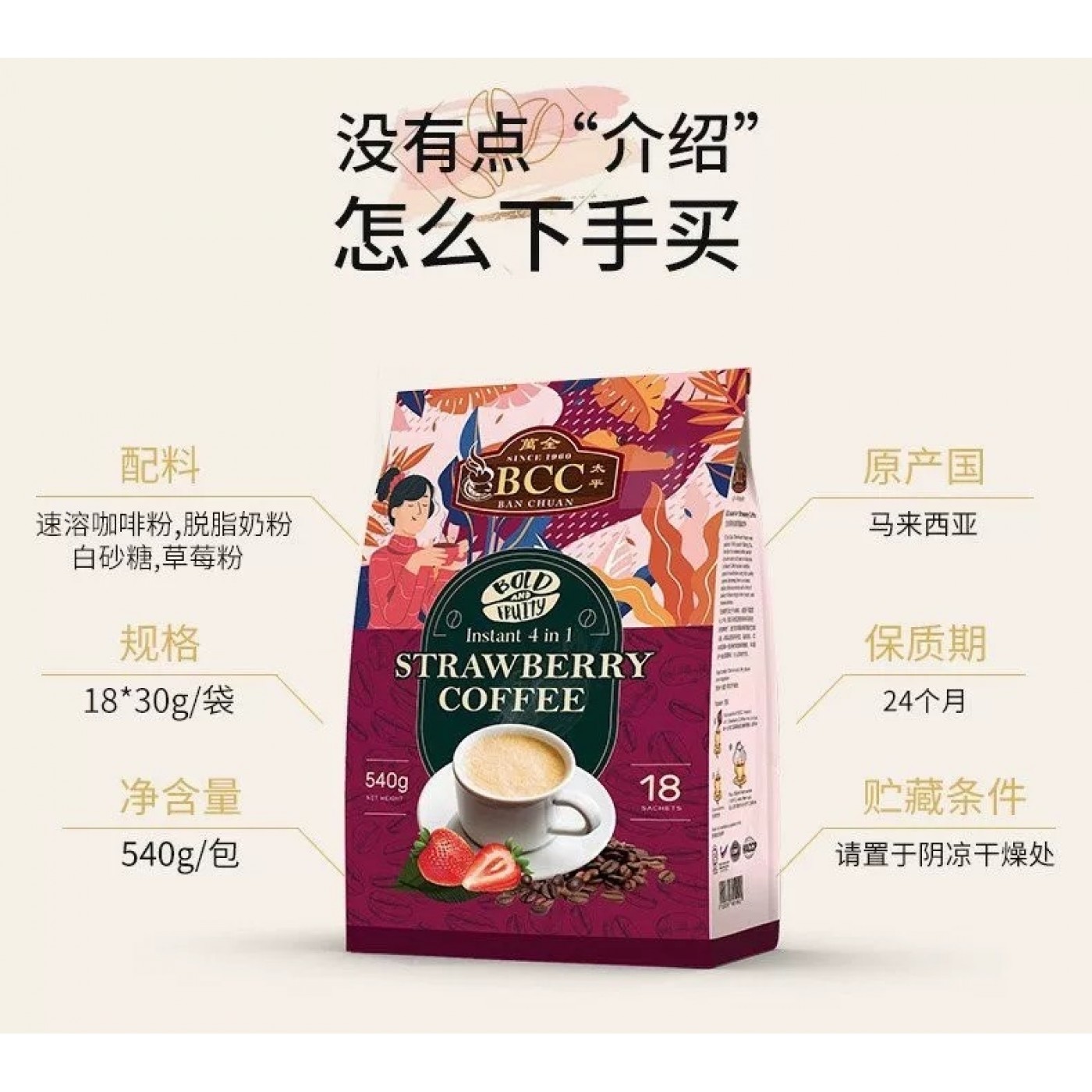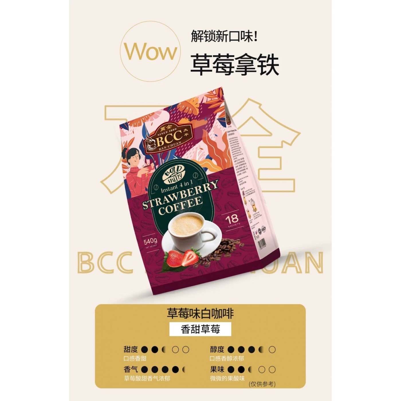 BCC 4 IN 1 STRAWBERRY COFFEE 30GM x 18'S (16PKT/CTN)