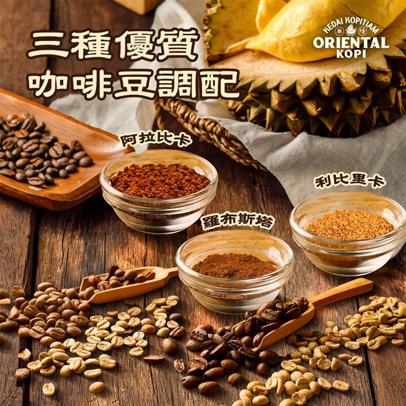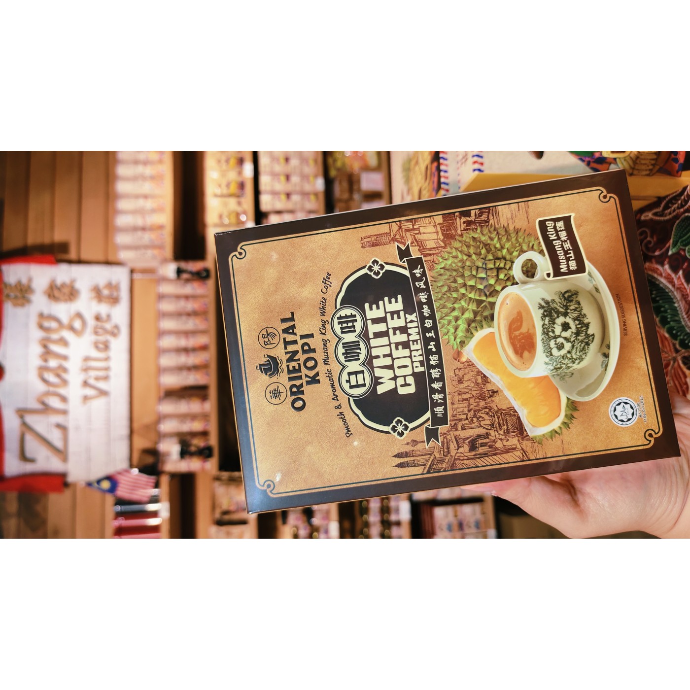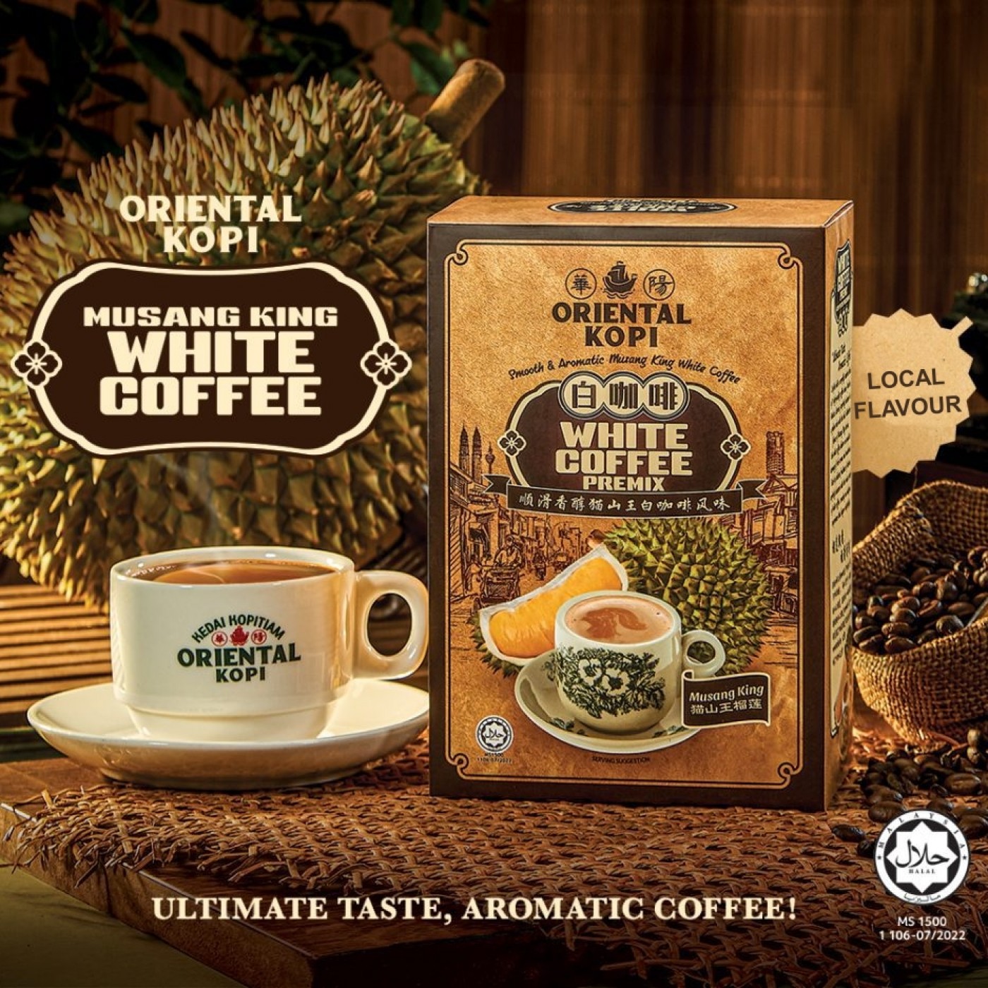 Crafted with a carefully selected blend of 3 coffee beans [Arabica, Robusta, Liberica] perfectly balanced in a golden ratio with the bold, distinctive flavor! For Musang King durian, this white coffee delivers an exquisite harmony of rich aroma and smoothness. Each sip delicate fruitiness of durian is perfectly balanced with the robust depth of white coffee, offering an indulgent experience that lingers delightfully.